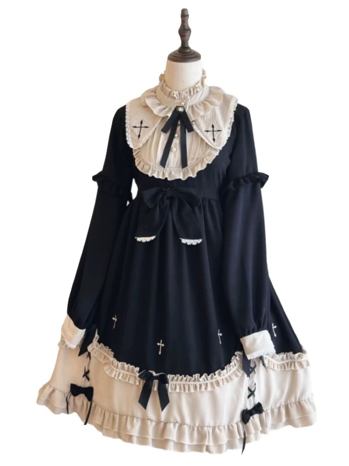 dolldoll L〜4XL 十字架モチーフ長袖ロリータワンピースゆめかわいい ロリータドレス ワンピース 地雷系ロリータファッション 夢かわいいファッション コスプレ メイド 大きいサイズ 3XL 4XL dd25102701