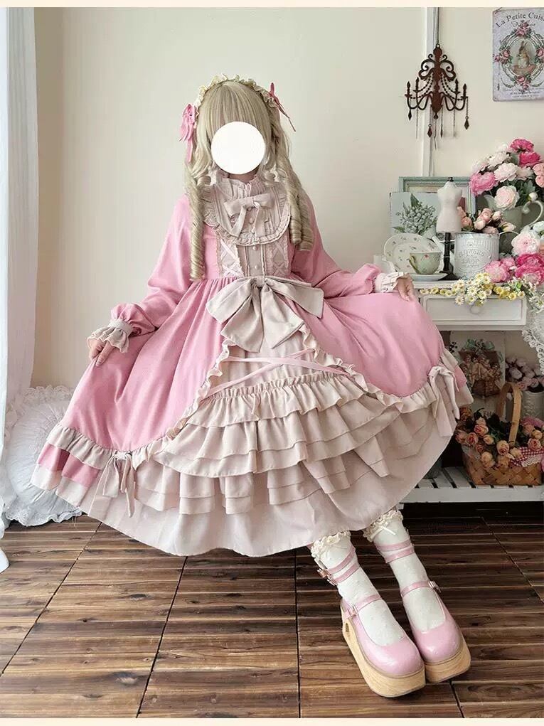 dolldoll L〜4XL リボン長袖ロリータワンピースゆめかわいい ロリータドレス ワンピース 地雷系ロリータファッション 夢かわいいファッション コスプレ メイド 大きいサイズ 3XL 4XL dd25110101