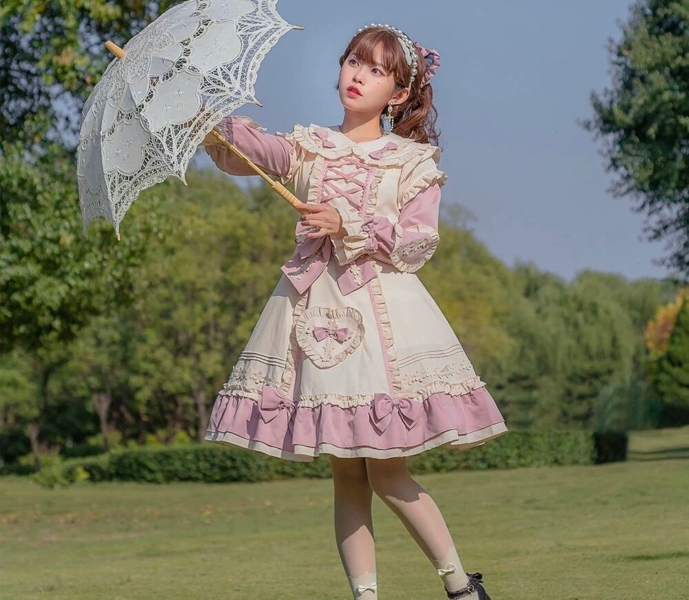dolldoll L〜4XL ロリータ ピンクピンクゆめかわいい リボンハート ロリータドレス ワンピース 地雷系ロリータファッション 夢かわいいファッション 大きいサイズ 3XL 4XL dd24062901