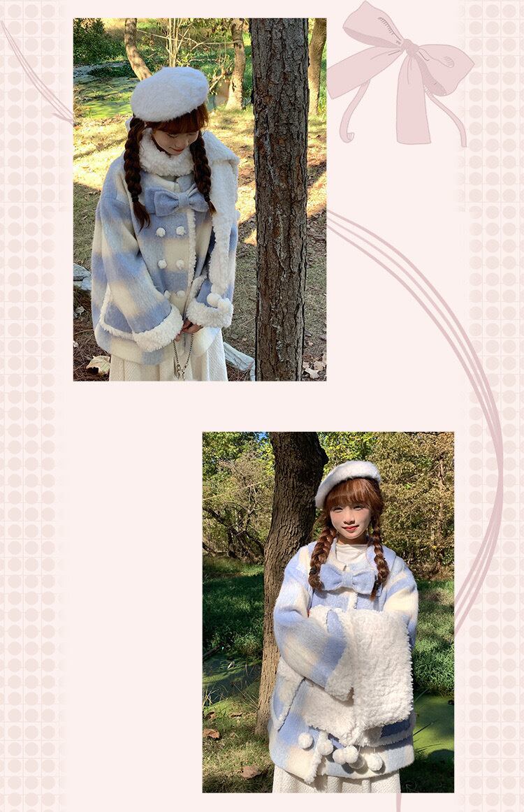 dolldoll S〜L 中綿チェックリボンコート アウター メルヘン 病みかわいい ロリータ 大きいサイズ フード付きトップス 羽織り ワンピース 地雷系ロリータファッション 夢かわいいファッション 大きいサイズ 3XL 4XL dd24110201