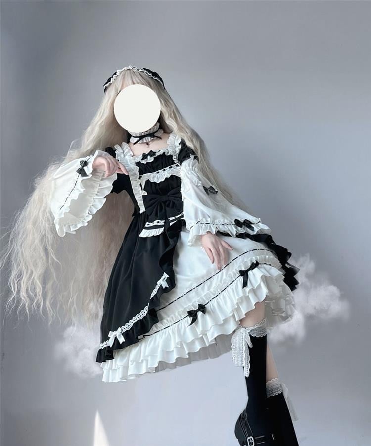dolldoll M〜4XL 袖2wayロリータワンピース 病みかわいい ロリータ 大きいサイズ フード付きトップス 羽織り ワンピース 地雷系ロリータファッション 夢かわいいファッション 大きいサイズ 3XL 4XL dd25010601